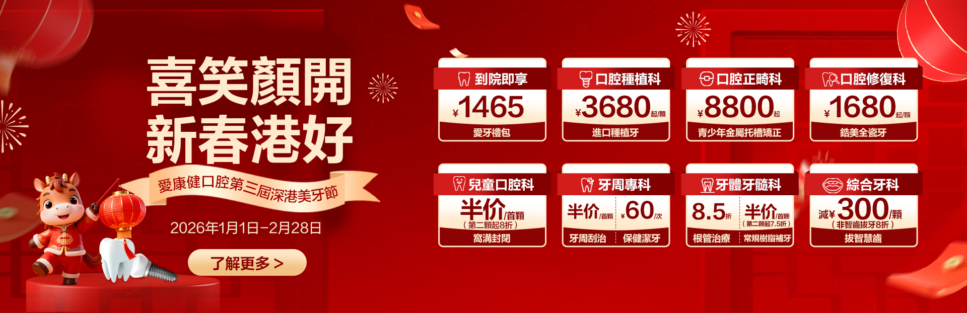 您好,歡迎訪問爱康健口腔医院官方網站! 香港政府指定使用「長者醫療券」深圳牙科機構 00852-62157070(香港)     0755-61302632(大陸)